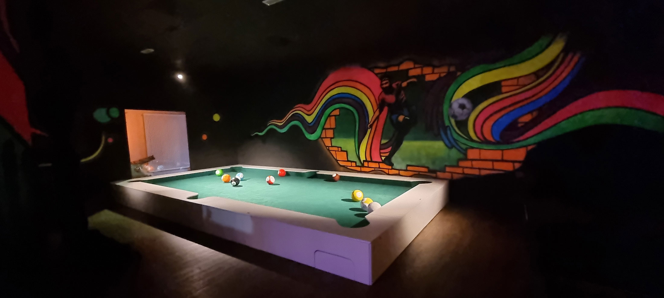 Erleben Sie eine völlig neue Dimension des Minigolfs mit unseren faszinierenden Kulissen, die unter Schwarzlicht erstrahlen. Diese einzigartigen Szenerien schaffen eine Atmosphäre, die das Minigolfspiel auf eine ganz neue Ebene hebt.